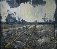 Le titre est “Lot’s Frau” et le peintre est Anselm Kiefer. La peinture est sombre, utilisant gris, blanche, noir et brune pour les couleurs. La moitié supérieure est peinture gris peint avec du sel; le sel est la fissuration. La autre moitié est peinte en gris avec des « Stucco » et de métal fixée. Ensemble, il forme brune voie ferrée. Les matériaux tombent de la peinture.